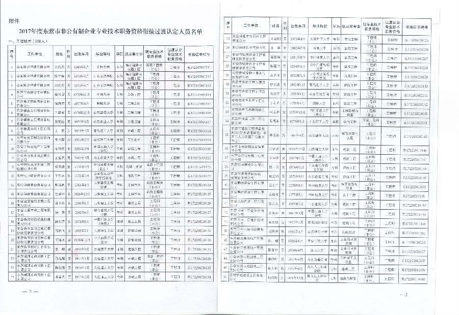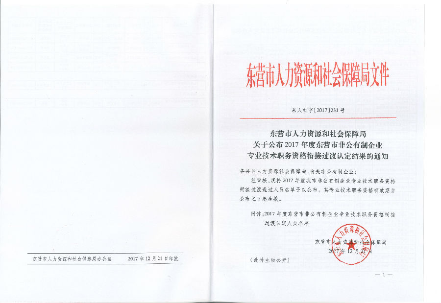 关于公布2017年度东营市非公有制企业专业技术职务资格衔接过渡认定结果的通知