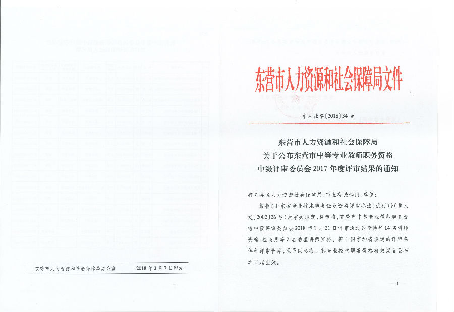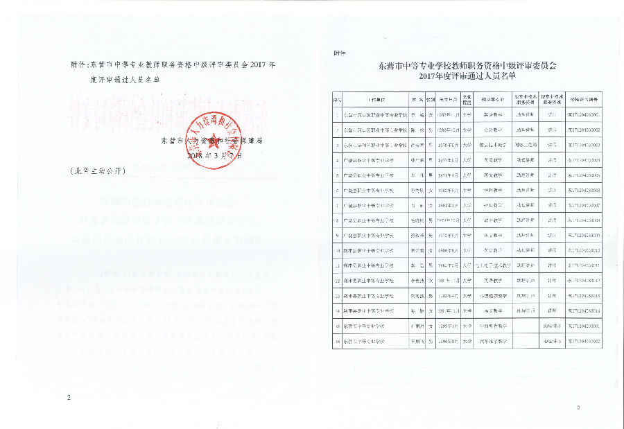 关于公布东营市中等专业教师职务资格中级评审委员会2017年度评审结果的通知